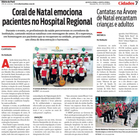 Jornal Diário do Pará – Coral de Natal emociona pacientes no Hospital Regional do Sudeste do Pará