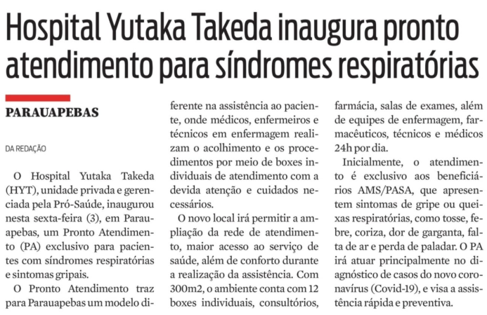 Jornal Diário do Pará – Hospital Yutaka Takeda inaugura ala de pronto atendimento para síndromes respiratórias