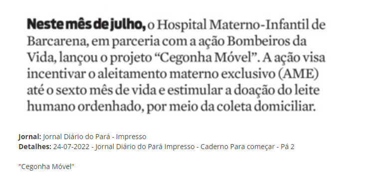 Jornal Diário do Pará Impresso – “Cegonha Móvel”