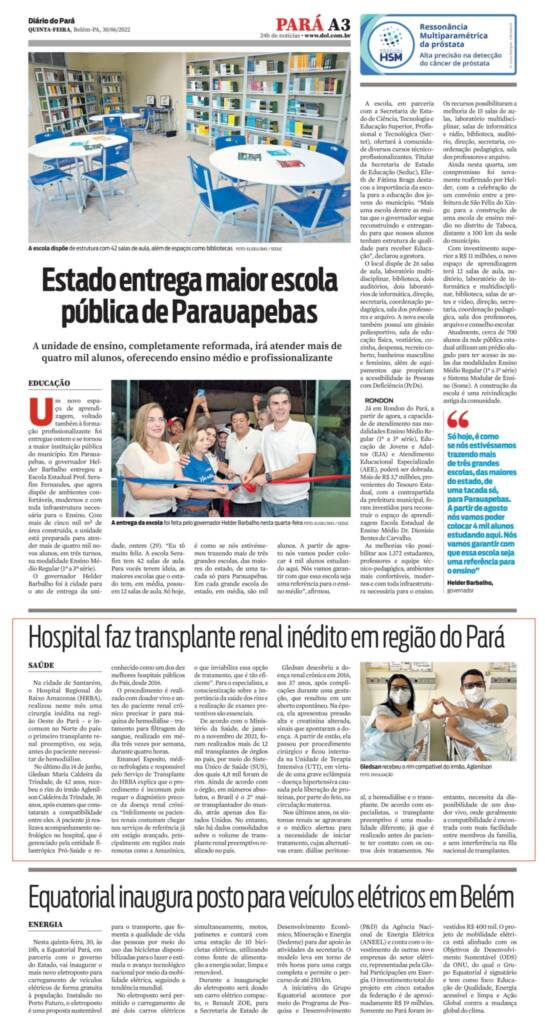 Jornal Diário do Pará Impresso – Hospital faz transplante renal inédito em região do Pará