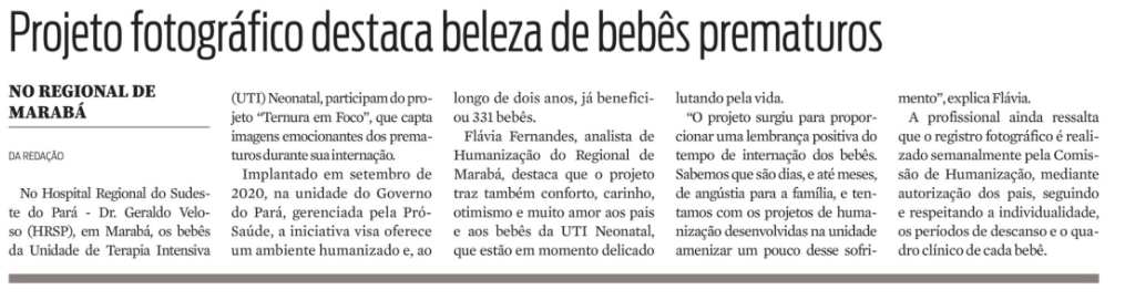 Jornal Diário do Pará Impresso – Projeto fotográfico destaca beleza de bebês prematuros