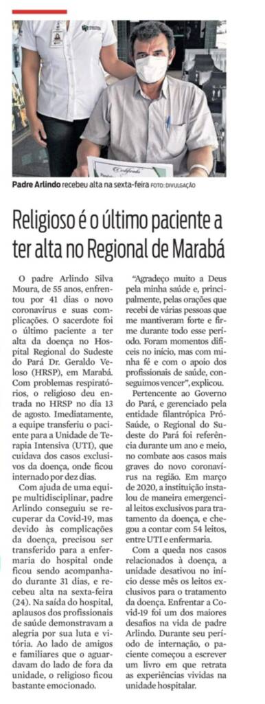 Jornal Diário do Pará Impresso – Religioso é o último paciente a ter alta no Regional de Marabá