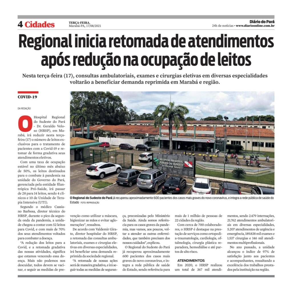 Jornal Diário do Pará – Regional Inicia retomada de atendimentos após redução na ocupação de leitos