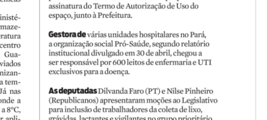 Jornal Diário do Pará – Relatório Institucional da Pró-Saúde aponta que entidade chegou a administrar 600 leitos clínicos e de UTI exclusivos para Covid-19