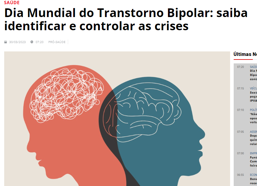 Jornal do Estado – Dia Mundial do Transtorno Bipolar: saiba identificar e controlar as crises