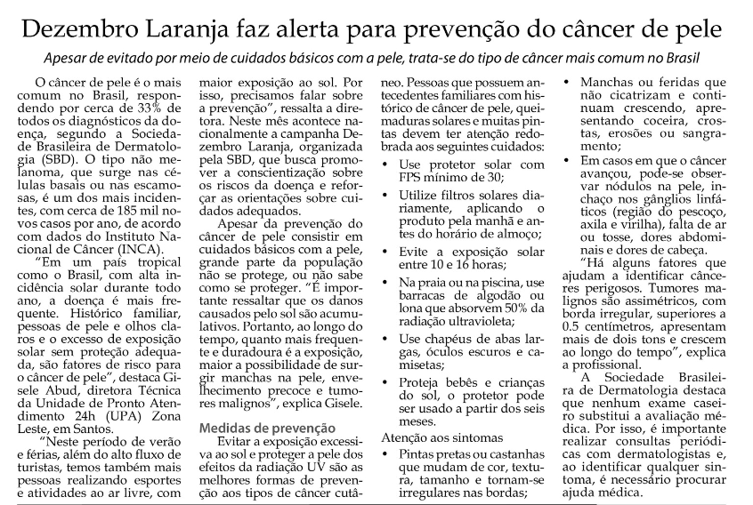 Jornal Gazeta Pinheiros – Dezembro Laranja faz alerta para prevenção do câncer de pele