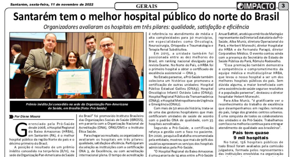 Jornal O Impacto Impresso – Santarém tem o melhor hospital público do Norte do Brasil