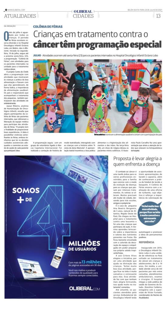 Jornal O Liberal – Crianças em tratamento contra o câncer tem programação especial