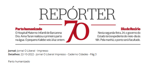 Jornal O Liberal Impresso – Hospital Materno-Infantil realiza primeiro parto na água