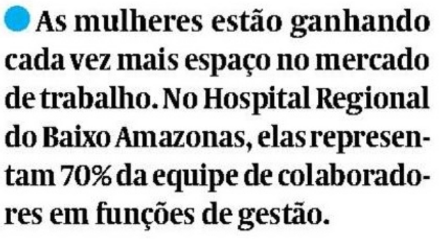 Jornal O Liberal – Mulheres ocupam 70% dos cargos de gestão no Hospital Regional do Baixo Amazonas