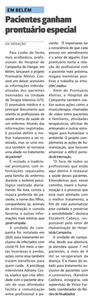 Jornal O Liberal – Pacientes ganham prontuário especial