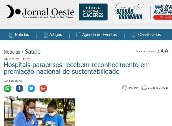Jornal Oeste – Hospitais paraenses recebem reconhecimento em premiação nacional de sustentabilidade