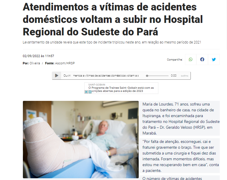 Liderança Brasil – Atendimentos a vítimas de acidentes domésticos voltam a subir no Hospital Regional do Sudeste do Pará