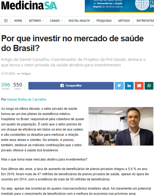 Medicina S/A – Coordenador de Projetos da Pró-Saúde destaca o que torna o setor privado da saúde atrativo para investimentos