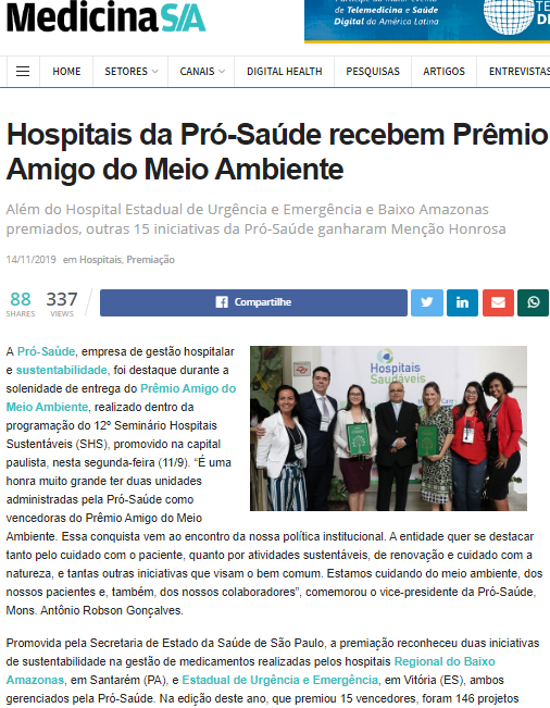 Medicina S/A – Hospitais da Pró-Saúde recebem Prêmio Amigo do Meio Ambiente