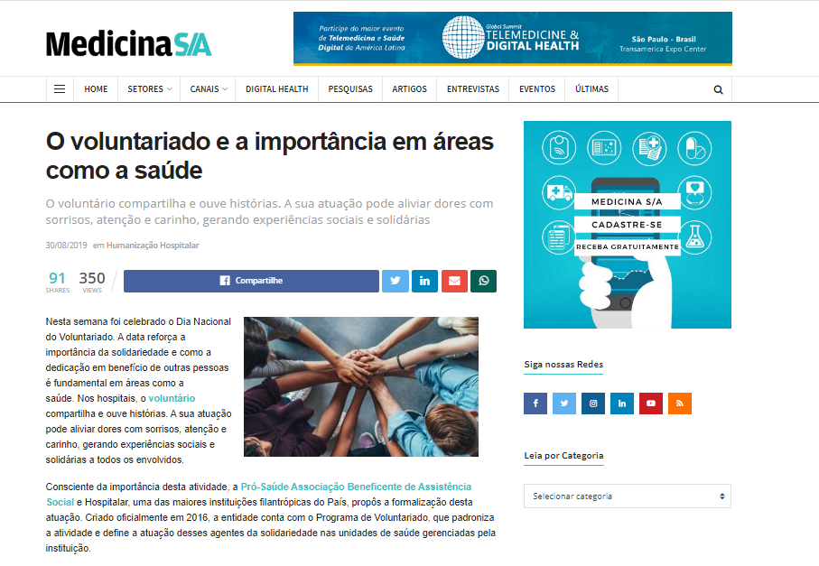 Medicina S/A – Pró-Saúde fala sobre a importância do voluntariado na área da saúde em sua data comemorativa
