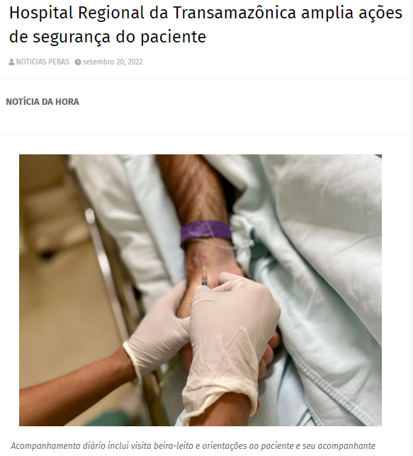 Notícia Pebas – Hospital Regional da Transamazônica amplia ações de segurança do paciente