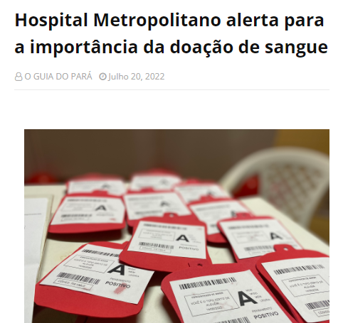 O Guia do Pará – Hospital Metropolitano alerta para a importância da doação de sangue