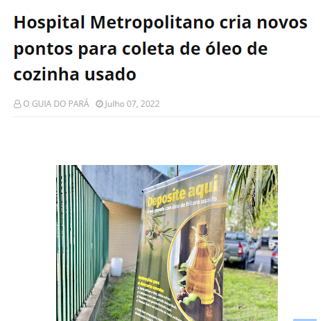 O Guia do Pará – Hospital Metropolitano cria novos pontos para coleta de óleo de cozinha usado