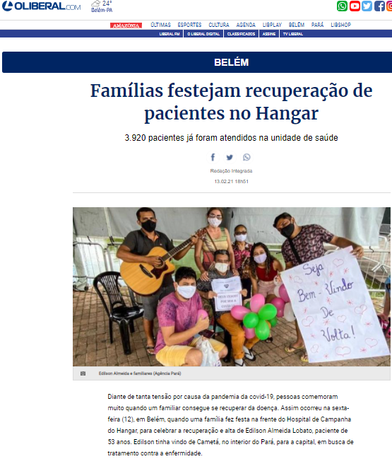 O Liberal – Famílias celebram alta médica de pacientes no Hospital de Campanha do Hangar