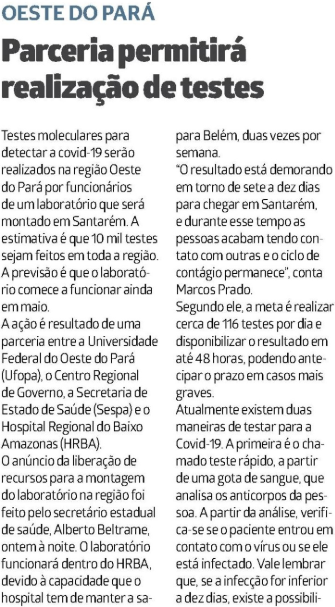 O Liberal – Hospital Regional do Baixo Amazonas firma parceria para realizar cerca de 10 mil testes da covid-19 em novo laboratório