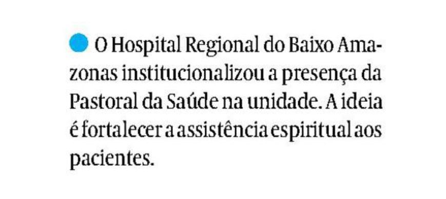 O Liberal – Hospital Regional do Baixo Amazonas institucionaliza a presença da Pastoral da Saúde