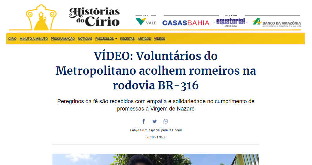 O Liberal Online – Voluntários do Metropolitano acolhem romeiros na rodovia BR-316