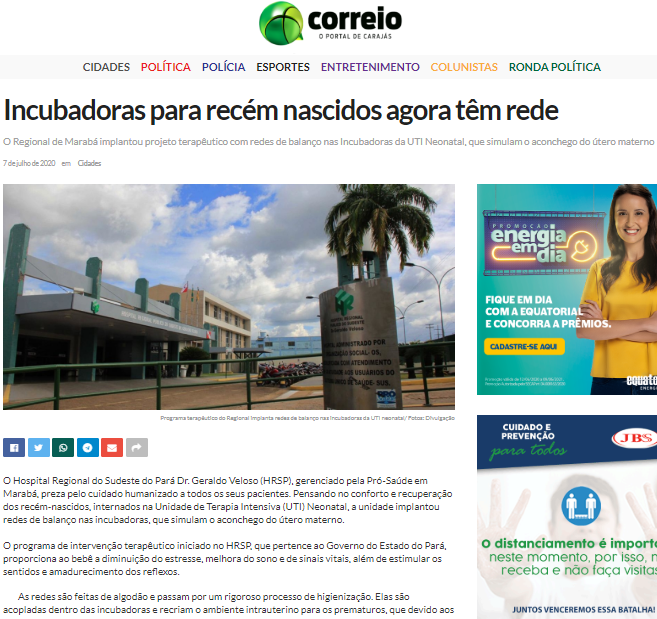 Portal Correio dos Carajás – Hospital Regional do Sudeste do Pará implanta redes de balanço nas incubadoras da UTI neonatal