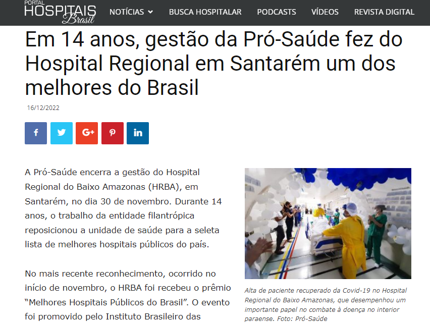 Portal Hospitais Brasil – Em 14 anos, gestão da Pró-Saúde fez do Hospital Regional em Santarém um dos melhores do Brasil