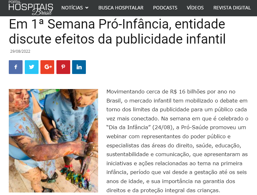 Portal Hospitais Brasil – Em 1ª Semana Pró-Infância, entidade discute efeitos da publicidade infantil