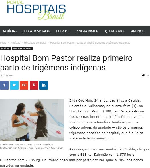 Portal Hospitais Brasil – Hospital Bom Pastor realiza primeiro parto de trigêmeos indígenas