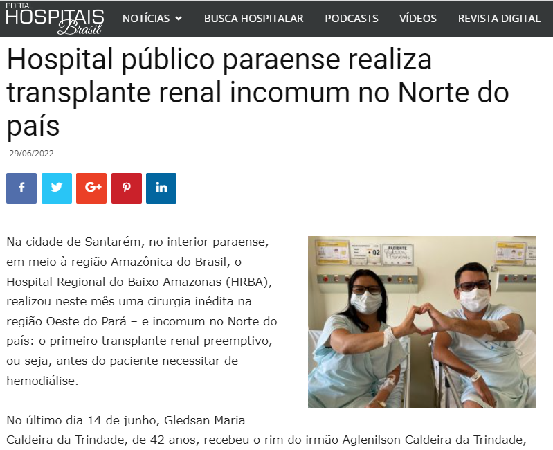 Portal Hospitais Brasil – Hospital público paraense realiza transplante renal incomum no Norte do país
