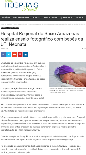 Portal Hospitais Brasil – Hospital Regional do Baixo Amazonas realiza ensaio fotográfico com bebês prematuros na UTI Neonatal