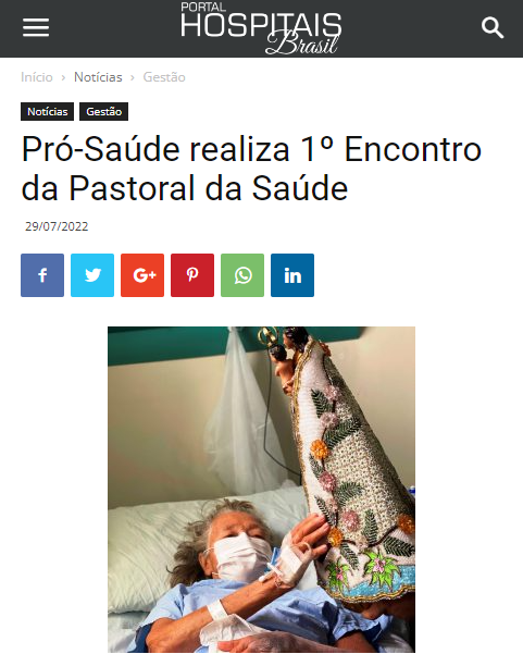 Portal Hospitais Brasil – Pró-Saúde realiza 1ª Encontro da Pastoral da Saúde
