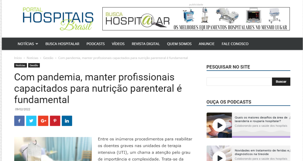 Portal Hospitais do Brasil – Com pandemia, manter profissionais capacitados para nutrição parenteral é fundamental