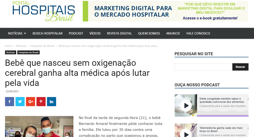 Portal Hospital do Brasil – Bebê que nasceu sem oxigenação cerebral ganha alta médica após lutar pela vida