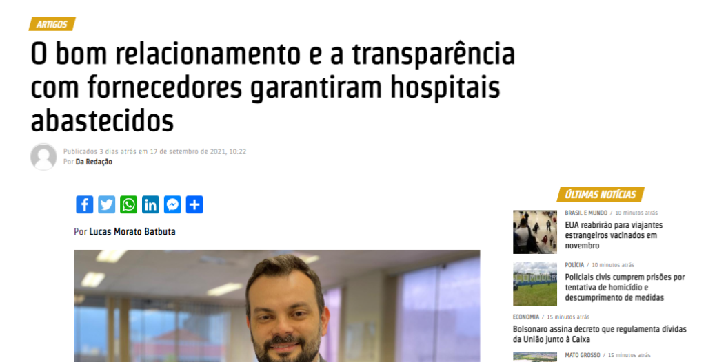 Portal Mato Grosso – O bom relacionamento e a transparência com fornecedores garantiram hospitais abastecidos
