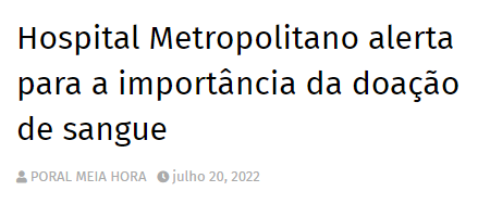 Portal Meia Hora – Hospital Metropolitano alerta para a importância da doação de sangue