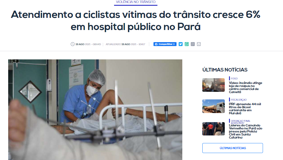 Portal Roma News – Atendimentos a ciclistas vítimas do trânsito cresce 6% em hospital público do Pará