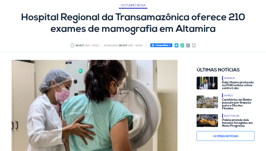 Portal Roma News – Hospital Regional da Transamazônica oferece 210 exames de mamografia em Altamira