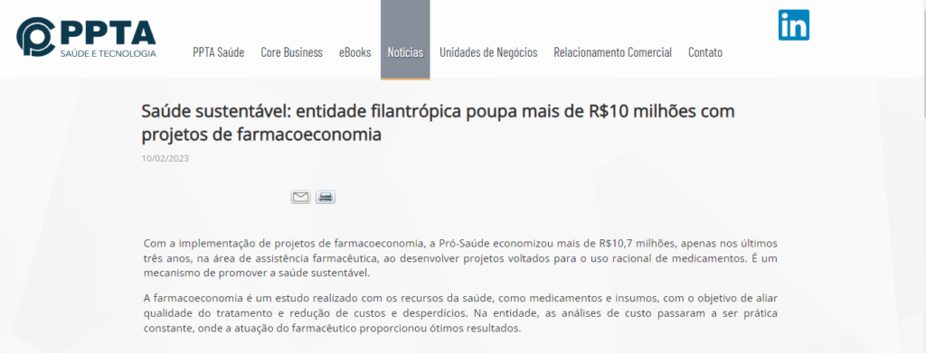 PPTA Saúde e Tecnologia – Saúde sustentável: entidade filantrópica poupa mais de R$10 milhões com projetos de farmacoeconomia