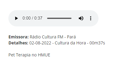 Rádio Cultura Para – Cultura da Hora- 02/08/2022 Pet Terapia – HMUE