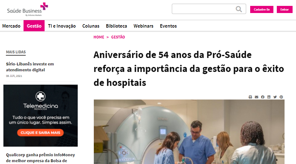 Saúde Business – Aniversário de 54 anos da Pró-Saúde reforça a importância da gestão para o êxito de hospitais