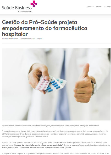Saúde Business – Gestão da Pró-Saúde projeta empoderamento do farmacêutico hospitalar