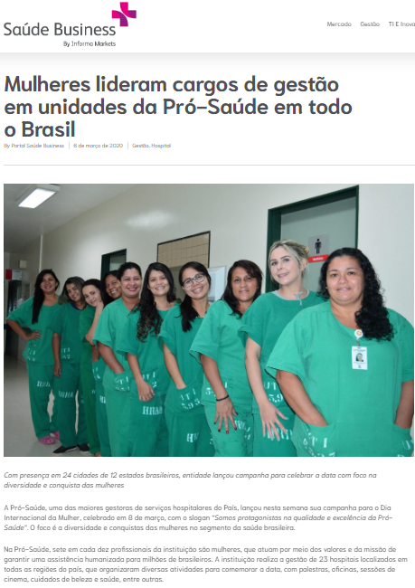 Saúde Business – Mulheres lideram cargos de gestão em unidades da Pró-Saúde em todo o Brasil