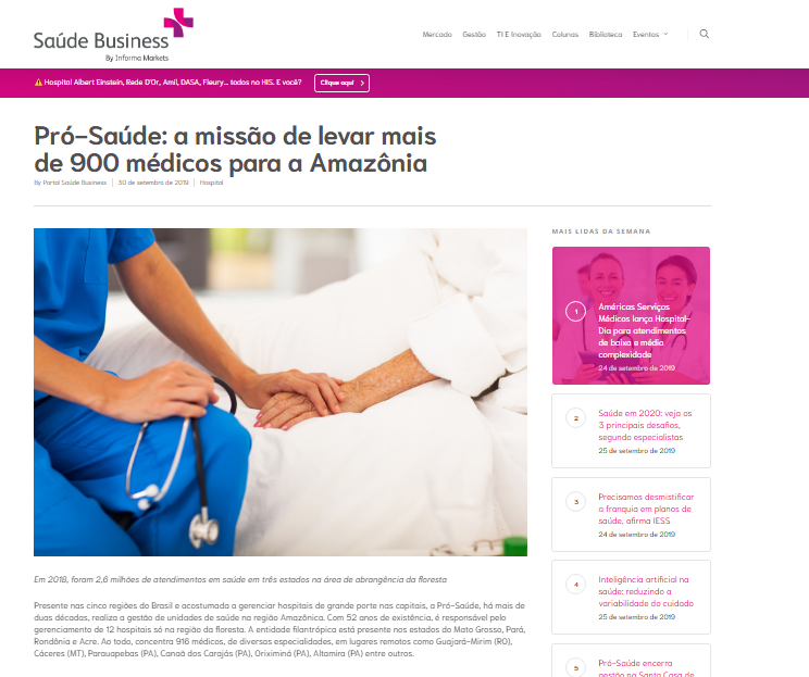 Saúde Business – Pró-Saúde: a missão de levar mais de 900 médicos para a Amazônia