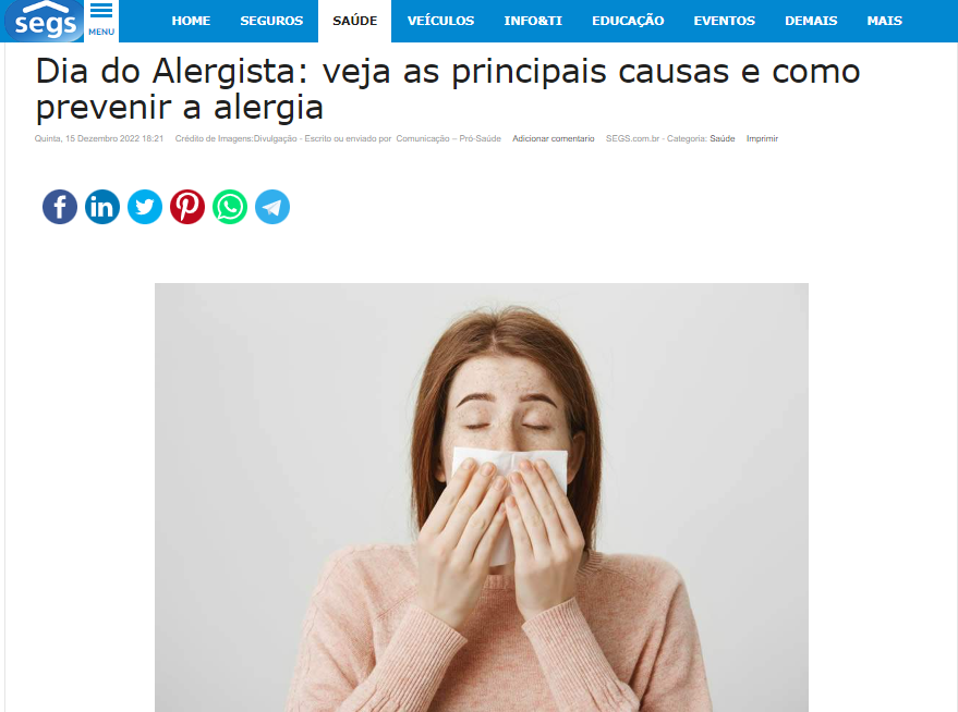 Segs – Dia do Alergista: veja as principais causas e como prevenir a alergia