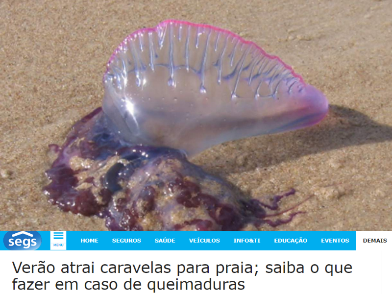 Segs – Verão atrai caravelas para praia; saiba o que fazer em caso de queimaduras