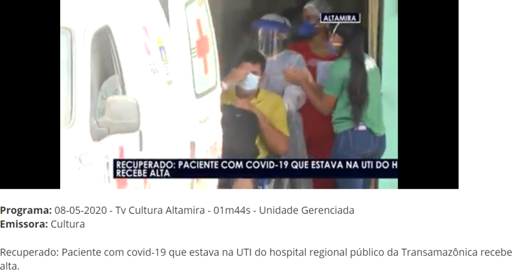 TV Cultura Altamira – Paciente com covid-19 que estava na UTI do Hospital Regional Público da Transamazônica recebe alta