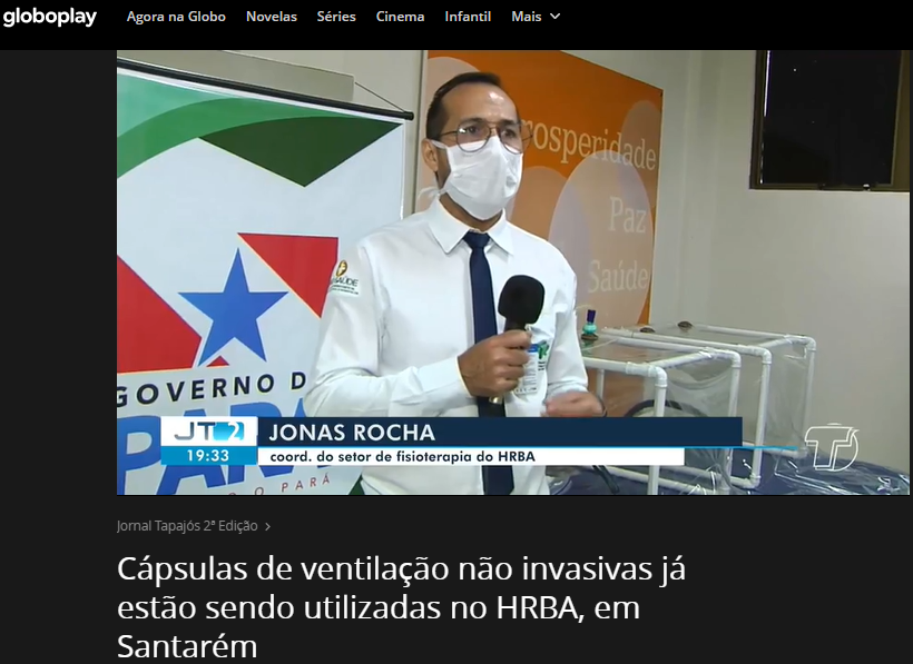 TV Globo – TV Tapajós – Jornal Tapajós 2ª Edição – Hospital Regional do Baixo Amazonas produz cápsulas de ventilação não invasivas para tratar pacientes com a Coivid-19